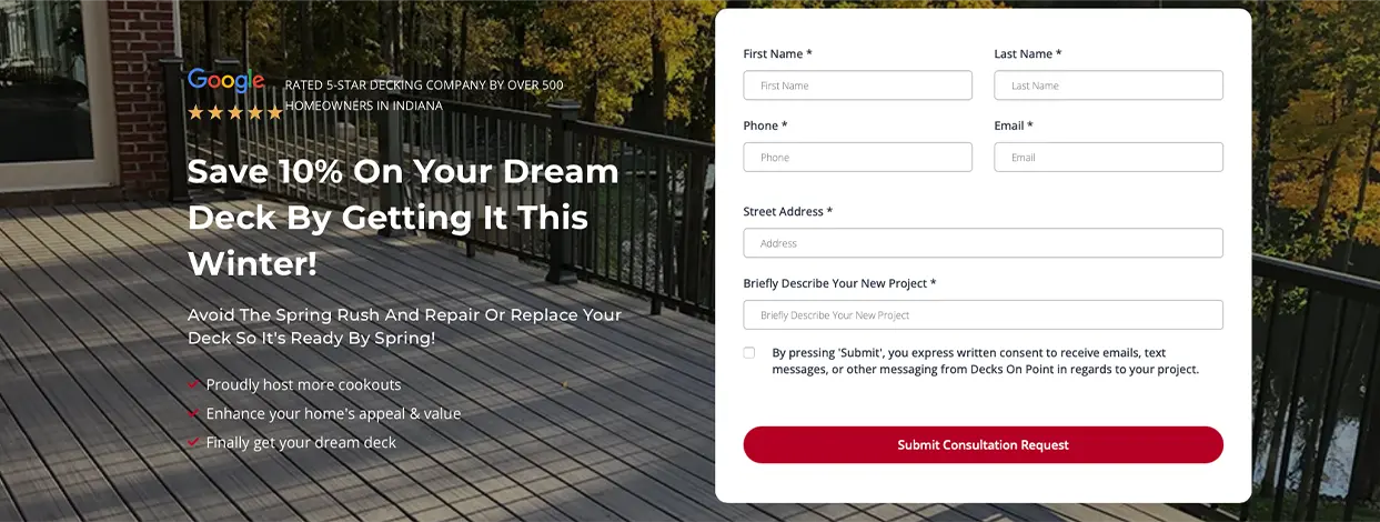 - For deck builders: 50% off labor, free railing upgrade, free decking upgrade