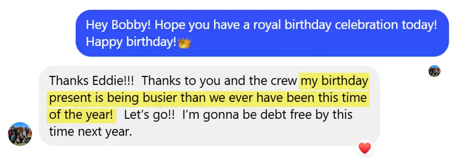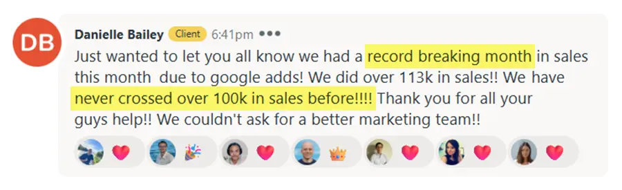Huge thanks for how you’ve helped our business.