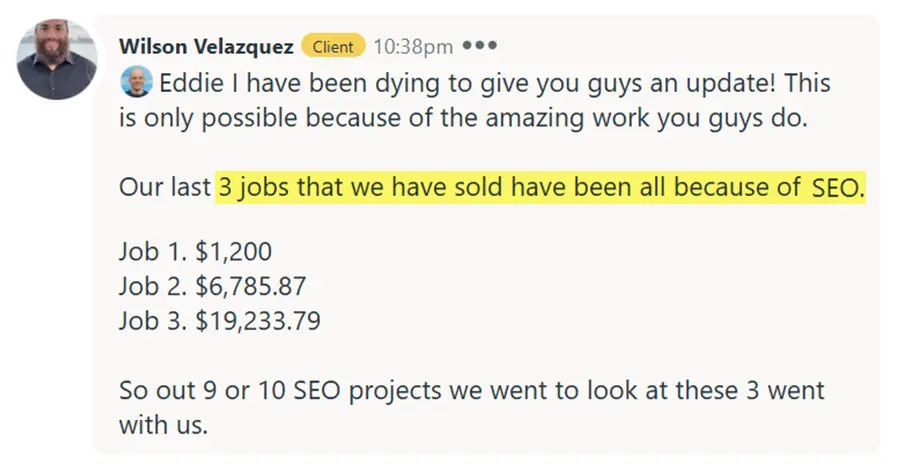 The SEO and just the advantage you’ve given us in our market is second to none. So I wanted to thank you guys for all the hard work you guys do.
