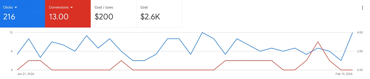 For one his slower months ever, Steven got 13 leads at $200 from PPC alone. He got over 30 more from Local Service Ads and Facebook Ads.