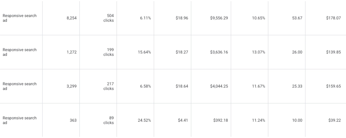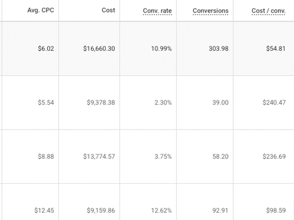 Example of PPC For Campaigns For Different Trades