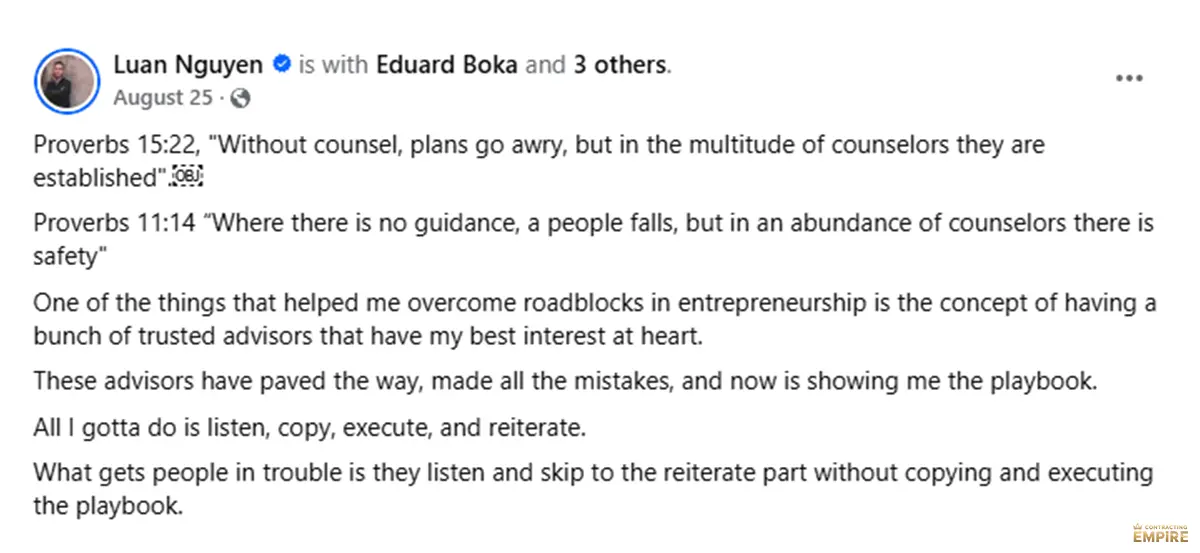 It’s the difference between being a contractor and becoming a CEO who can take month-long trips to Vietnam, leaving a thriving business and a legacy for his kids.