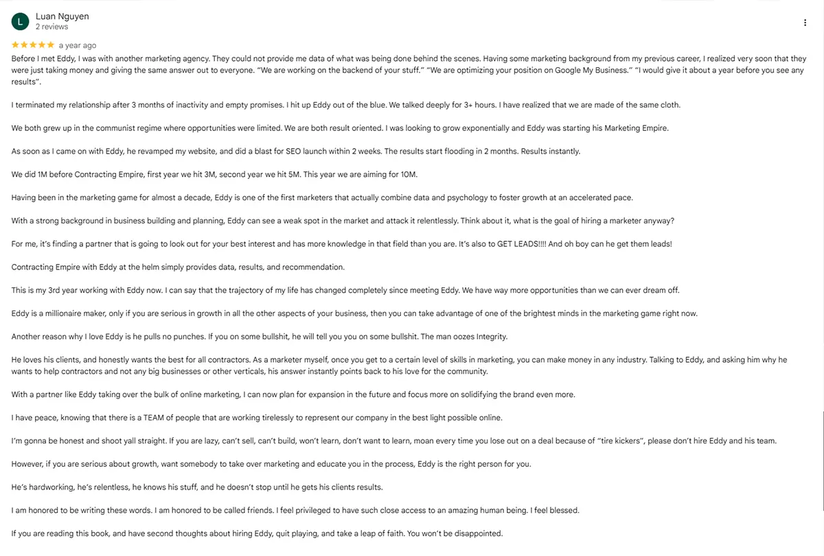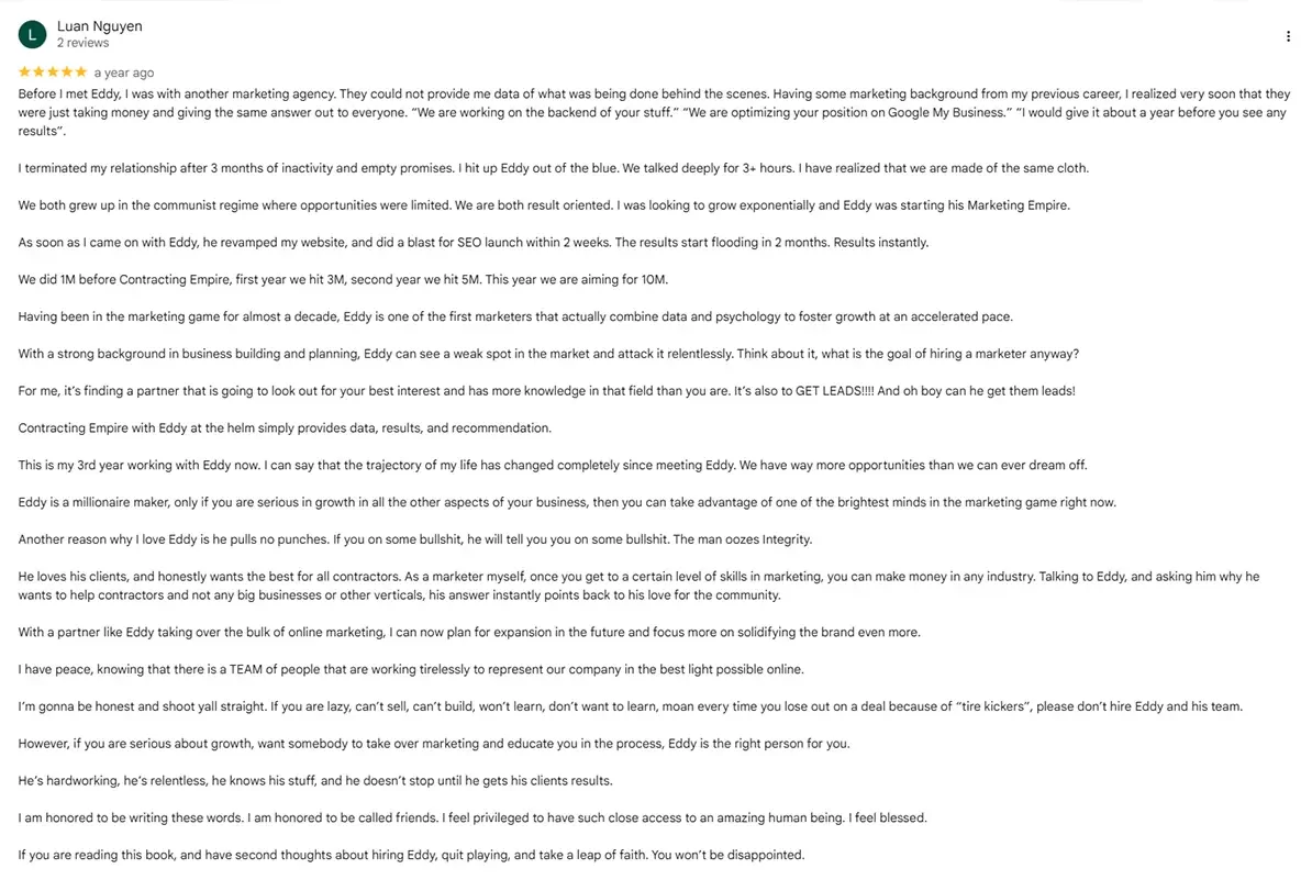 That’s what we did for Luan. We built him a story of trust that homeowners could see and feel from their very first click.