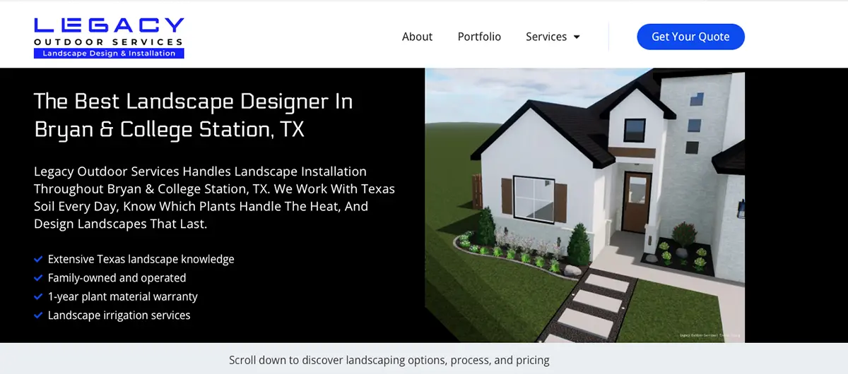 A Landscape Designer service page that targets the main locations our client services, Bryan & College Station in Texas.